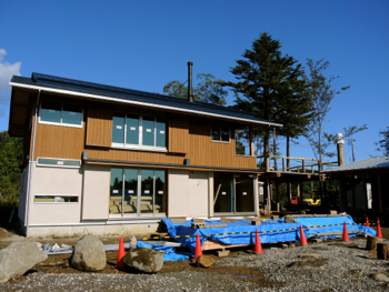 先週末に外壁の左官仕上げが完了し、ようやく足場が外れました。