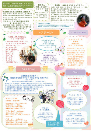 その他、ワークショップ、drink&food、チャリティー販売、ライブなど盛り沢山の二日間です。