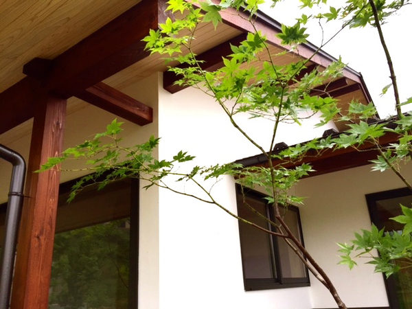 庭の小高い築山には、山もみじ、ハウチワカエデ、三つ葉ツツジ